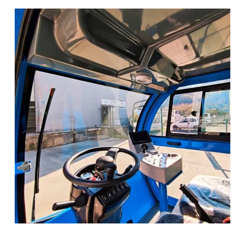 • Konforlu Kabin: Kaynaklı çelik konstrüksiyonlu kabin, ergonomik, deri kaplı şoför koltuğu ve emniyet kemerleri ile uzun süreli kullanıma uygundur. Opsiyonel Klima ile konfor maksimize edilebilir.