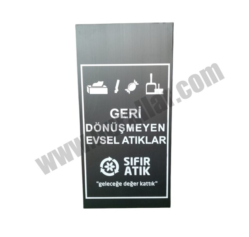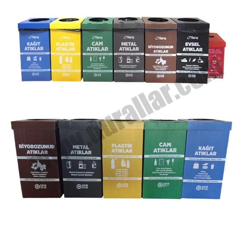 Atık kutularının 3 ya da 4 tarafında serigrafi baskı ile atık ismi ve istenilen logolar yazılmaktadır.