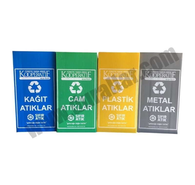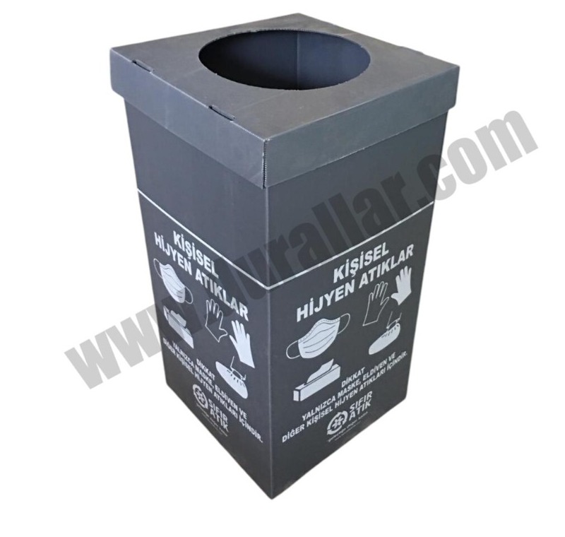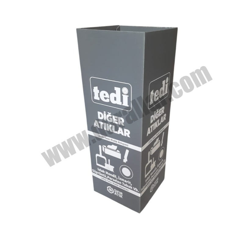 Atık kutusu üzerindeki yazı ve logolar tek renk ya da 4 renk baskı ile yapılabilir.